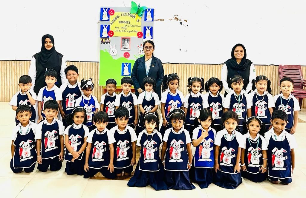 The badging ceremony of the newly joined Bunnies ( Montessori Junior students ) was held today ( 23/08/2023) in the school auditorium. The programme began with a welcome song by senior Bunnies. Principal, Vice Principal and HM of Pre-Primary addressed the children. It was followed by the badging ceremony which was inaugurated by our principal Mr. Madusoodanan. Bunny Motto ,Bunny law ,Bunny salute and Bunnies yell were presented by Bunny instructors. The programme concluded with the National Anthem.