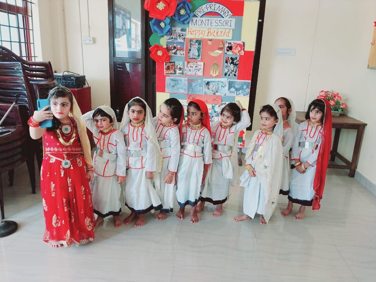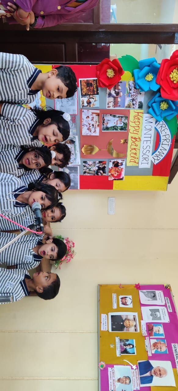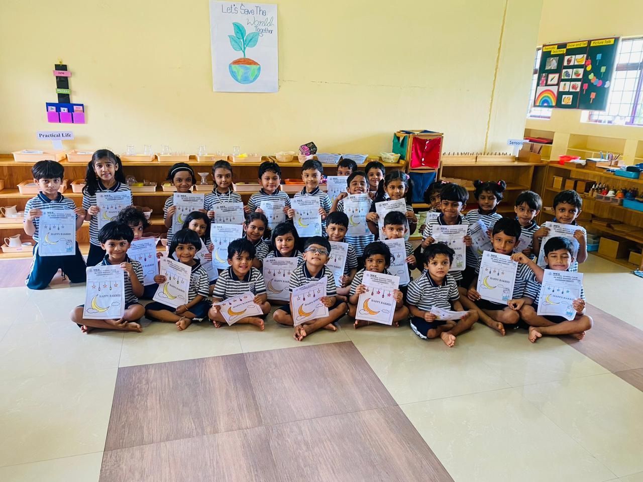 Bakrid celebration was conducted on 26/06/2023 in the Pre-Primary section of MES Central School, Tirur. A special Assembly was conducted. Children actively participated in Bakrid related programmes. After the Assembly children were served with 'laddu'. A group of children dressed in traditional dresses visited all the environments and performed Oppana. They were given an activity sheet with a Bakrid-festival picture to colour. Overall the celebration was very grand and children enjoyed all the activities to their maximum.