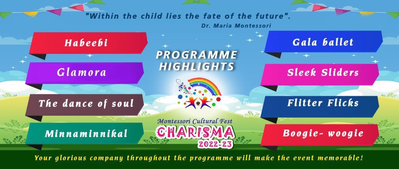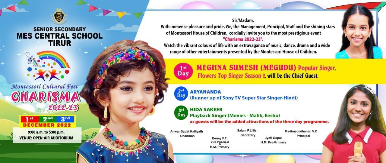Montessori cultural fest "Charisma 2022 - 23" was held on December 1st, 2nd and 3rd. MES Little Gems Play School Children participated in two dance events on 3/12/2022. The tiny tots had a wonderful experience stepping to the rhythm of music on the stage.08:40 PM