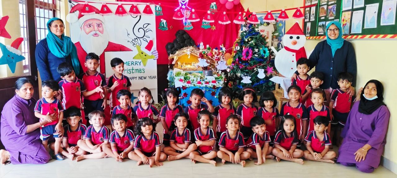 Christmas was celebrated with great joy and enthusiasm by the Play School along with the Pre-Primary section in the school auditorium on 19-12-25 (Friday). A special assembly was conducted in connection with Christmas. The children presented a variety of programmes, including songs, dances, and speeches, which added colour and cheer to the celebration. The arrival of Santa Claus was the special attraction of the programme. Children danced joyfully to the Jingle Bells song along with Santa, creating a lively and festive atmosphere. As part of the celebration, children were also given a Christmas-themed activity sheet. The programme concluded with the distribution of delicious cakes to all the children, making the celebration memorable and joyful.