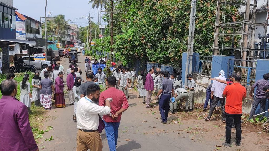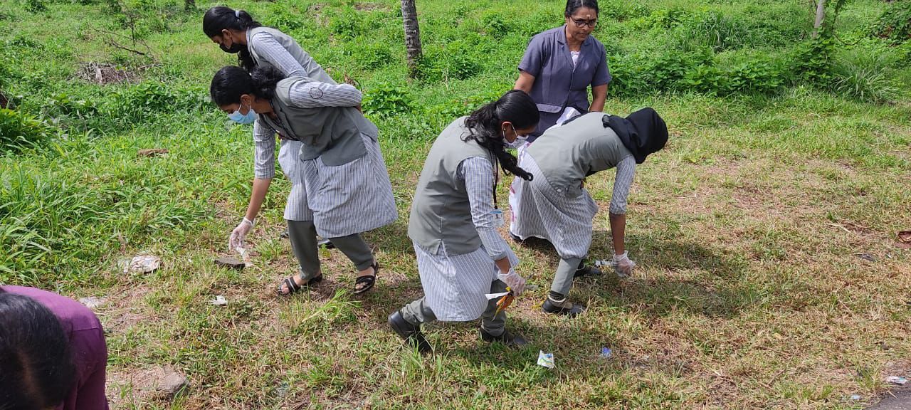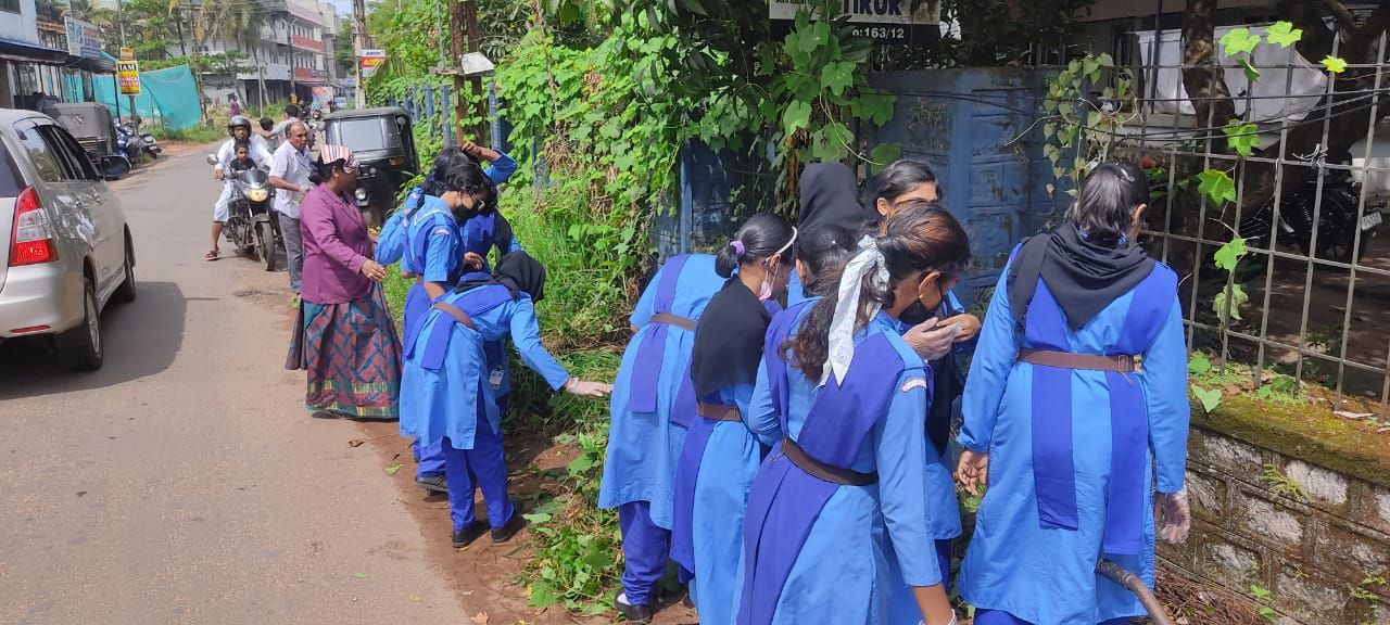 School Scouts, Guides, Cabinet Members, MES Corps and other students cleaned both sides of the road from KSEB Office to School.