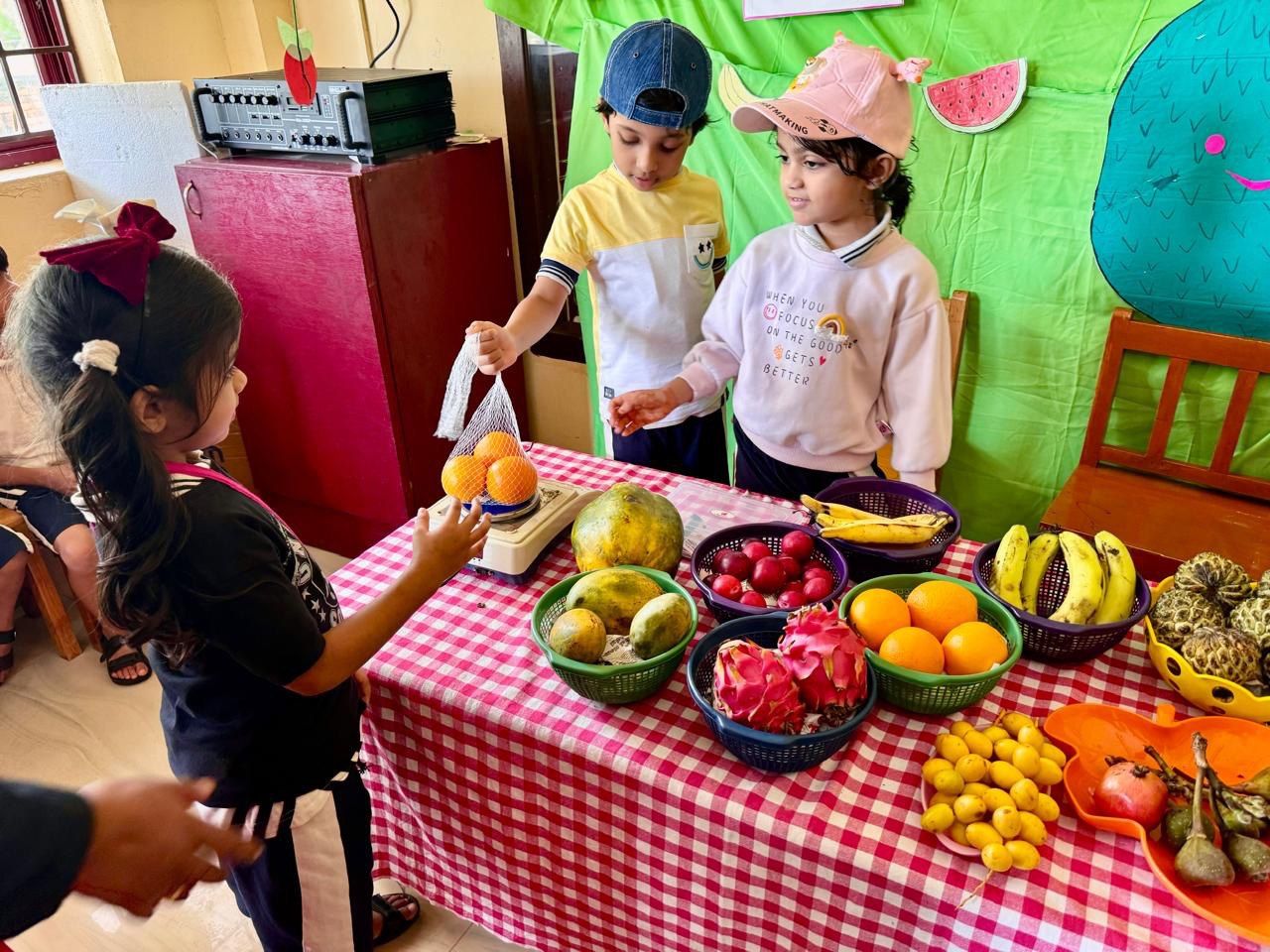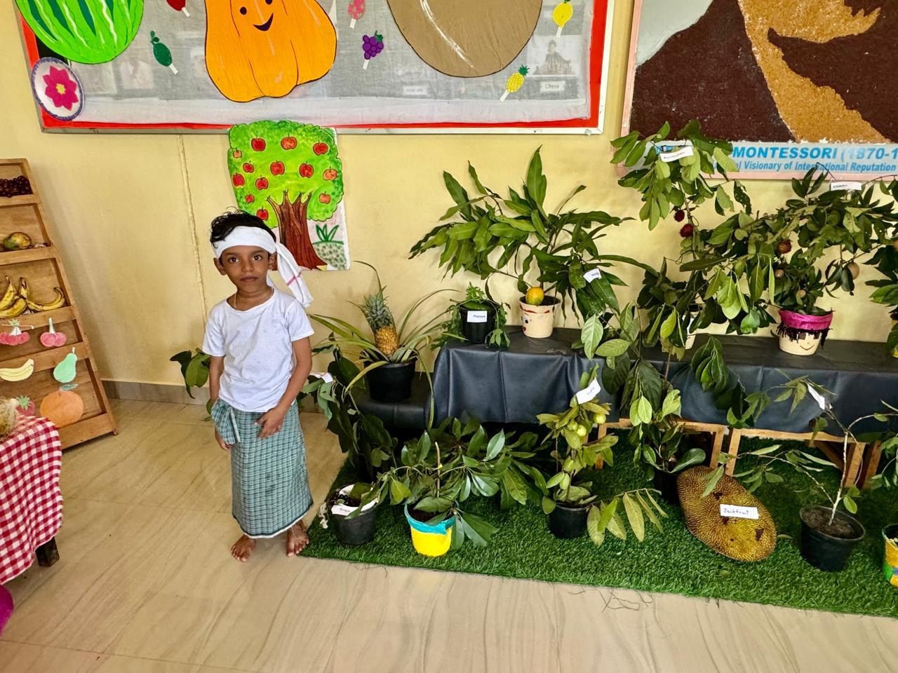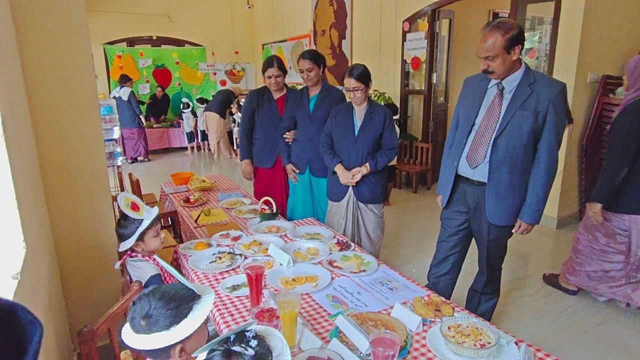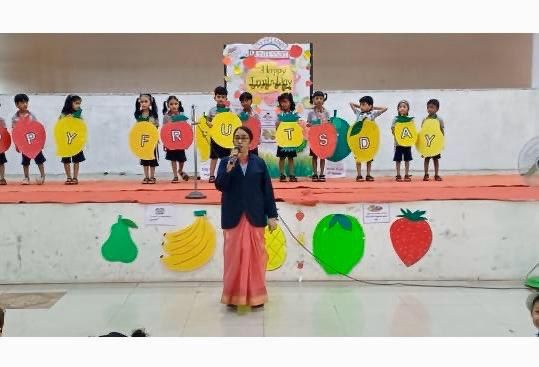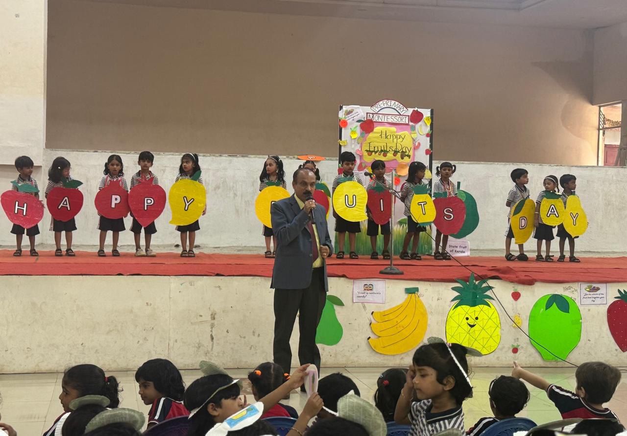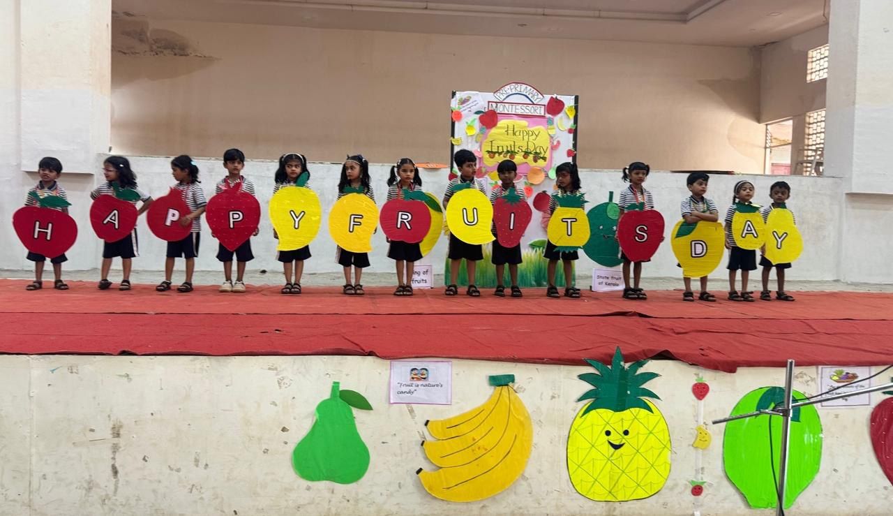 Fruits Day Celebration of Pre-Primary Montessori on 31/7/2025. The Fruits Day celebration of Pre-Primary was a vibrant and engaging event, showcasing the importance of fruits in our lives. The event began with a special assembly conducted by students from the Emilia and Freesia environments. Amesha of Freesia welcomed everyone with a warm speech, setting the tone for the celebration.