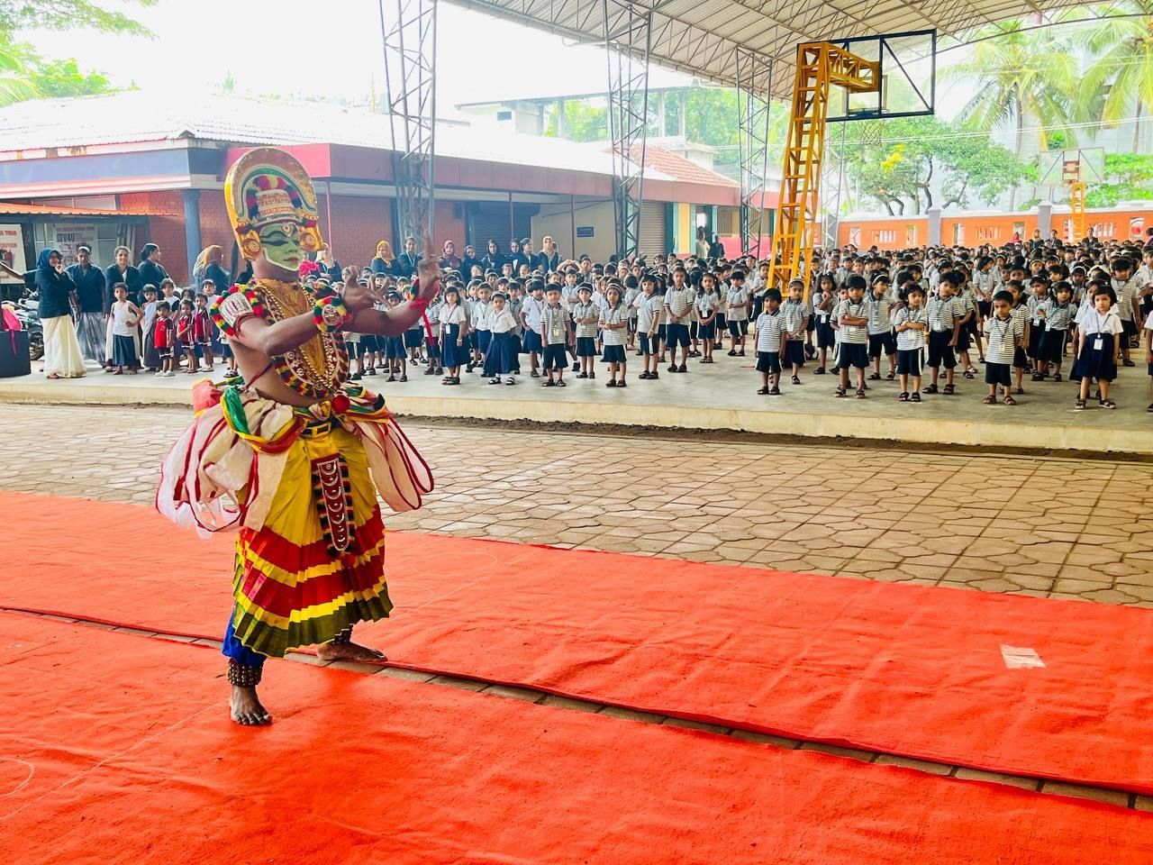 KERALAPPIRAVI DAY was celebrated by Pre-Primary Montessori section on 01-11-23 ( Wednesday ). Children performed varieties of programmes in the Special assembly conducted in the Open Auditorium. 'Ottan Thullal ' was performed by Mr. Aneesh Mannarkkad (music teacher of our school )which was really an amazing experience for children . Children were also given an activity sheet for colouring in connection with Keralappiravi.