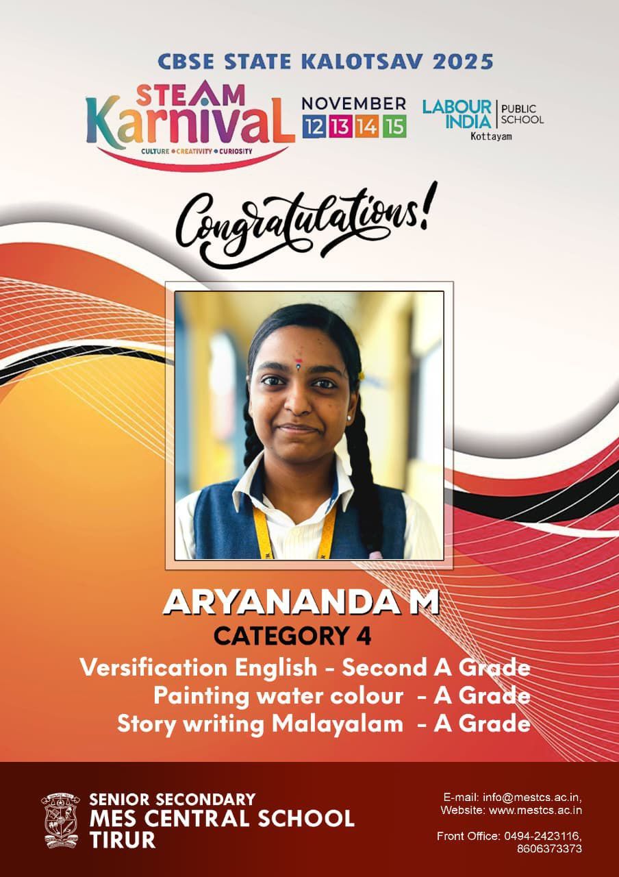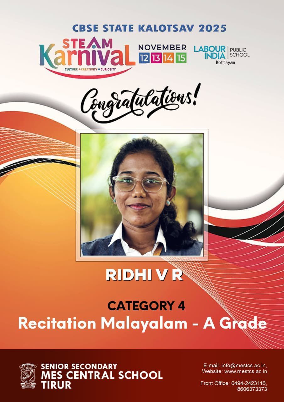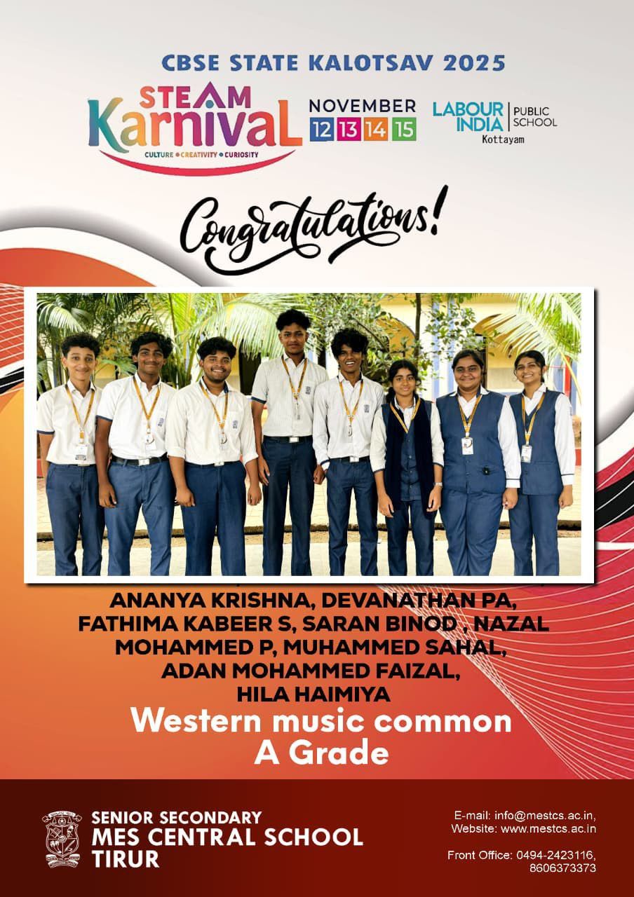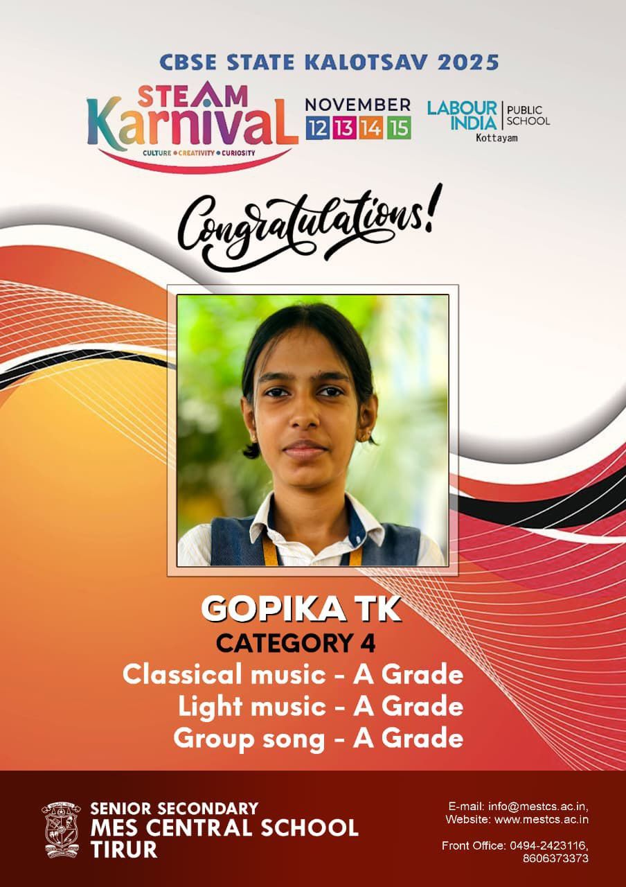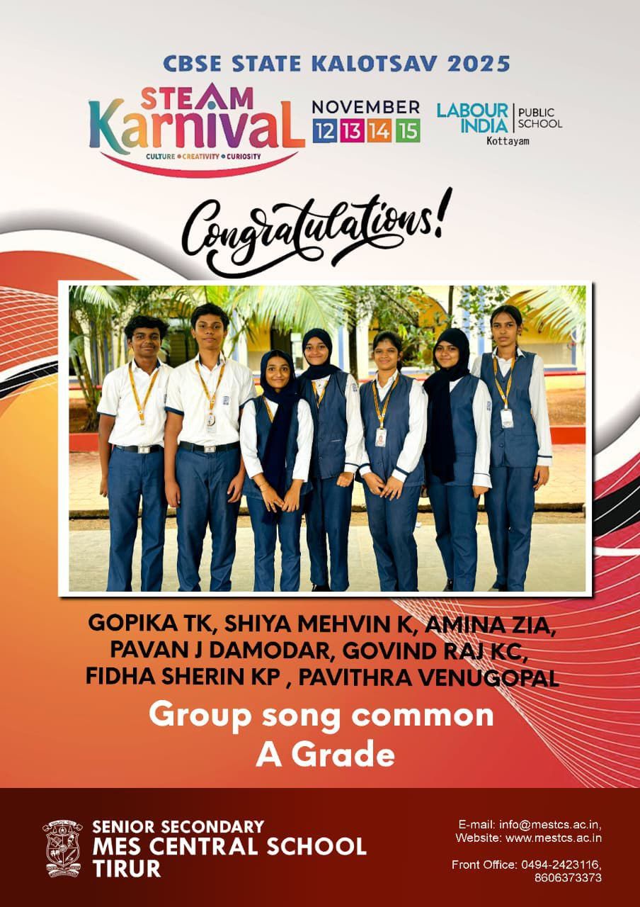 With immense pride and pleasure, we share that a few children from our school participated in the CBSE State Kalotsav held at Labour India Public School, Kottayam. Our students performed remarkably well, securing several A Grades and one Second Position.