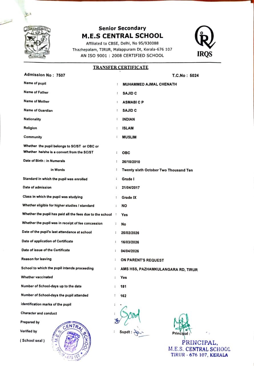 | 7507 | MUHAMMED AJMAL CHENATH | Download |