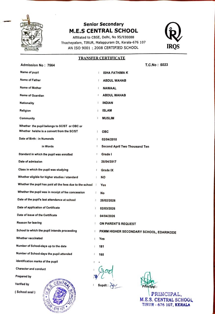 | 7564 | ISHA FATHIMA K | Download |